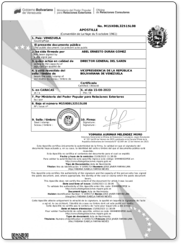 Podrás legalizar o apostillar los documentos de tus hijos o hijas, menores a 18 años, posean cédula o no. En el caso en que posean cédula, solo debes verificar que los datos que el sistema arroja sean correctos. Si la niña o niño no posee cédula de identidad aún, deberás indicar los datos de identificación manualmente.